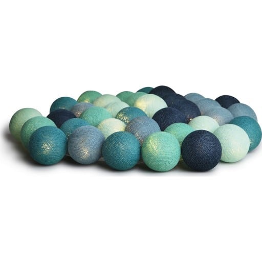 Iris Lights Cool Mint lyskædeLyskæde med flotte kugler i grønne og blå nuancer – Meget friske farver der står godt til hinanden og giver lidt landlig stemning.Boldene sidder 2 & 2 med 14 cm. imellem. Hver kugle er lavet i hånden med kvalitet for øje. Lysk